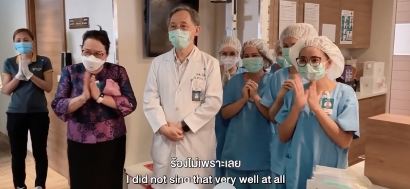 ด้วยข้อความระบุข้อความว่า จากครอบครัวของเราถึงคุณหมอ พยาบาล และบุคลากรทางการแพทย์ทุกท่าน: คำว่า ขอบคุณ คงไม่เพียงพอ กับการที่คุณได้ต่อเวลาชีวิตและให้โอกาสเราได้ใช้เวลาอยู่กับคนที่เรารัก ขอขอบคุณทุกท่านที่เสียสละเวลา ต้องห่างจากครอบครัวเป็นระยะเวลานานเป็นเดือนๆ กินนอนและกักตัวเองอยู่ที่โรงบาล ขอบคุณที่อดทนเหนื่อยเพื่อช่วยเหลือชีวิตผู้อื่น ทั้งๆที่เป็นการเสี่ยงชีวิตของทุกท่านเอง ขอบคุณที่ให้กำลังใจพวกเราในยามที่เรากลัว ขอบคุณที่เป็นที่ยึดมั่นของจิตใจในช่วงเวลาที่ไม่มีอะไรแน่นอน ขอบคุณที่ทำให้พวกเรา และทั้งโลก ยังมีความหวังและมองเห็นแสงสว่างที่ปลายทาง คุณคือนักรบ แถวหน้า ที่สู้แทนพวกเรา คุณคือผู้ที่ทำให้เราชนะได้ คุณคือวีรบุรุษของพวกเราทุกคนครอบครัวของเราขอขอบคุณ: คุณหมอวิชัย เตชะสาธิต คณะผู้บริหาร และทีมโรงพยาบาลบำรุงราษฎร์ เป็นอย่างสูงที่ดูแลรักษาเรามาตลอดทั้งเดือนที่ผ่านมาคุณหมอพจน์ อินทลาภาพร และทีมโรงพยาบาลราชวิถี คุณหมอเอนก มุ่งอ้อมกลาง ผู้อำนวยการสถาบันป้องกันควบคุม เขตเมือง คุณหมอพงศธร โตวิวัฒน์ และทีมโรงบาลพระราม9 ดร. พิไลพันธ์ พุธวัฒนะ และคณะเทคนิคการแพทย์มหาวิทยาลัยมหิดล ดร.สุภาภรณ์ วัชรพฤษาดี @matthew.deane1