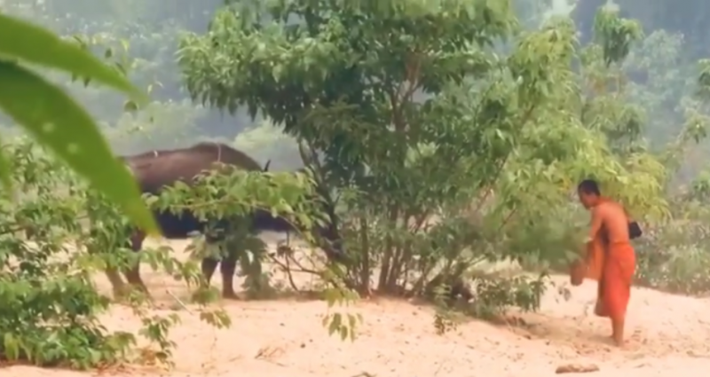 หลวงพี่วิ่งสุดชีวิต เจอควายไล่ขวิด