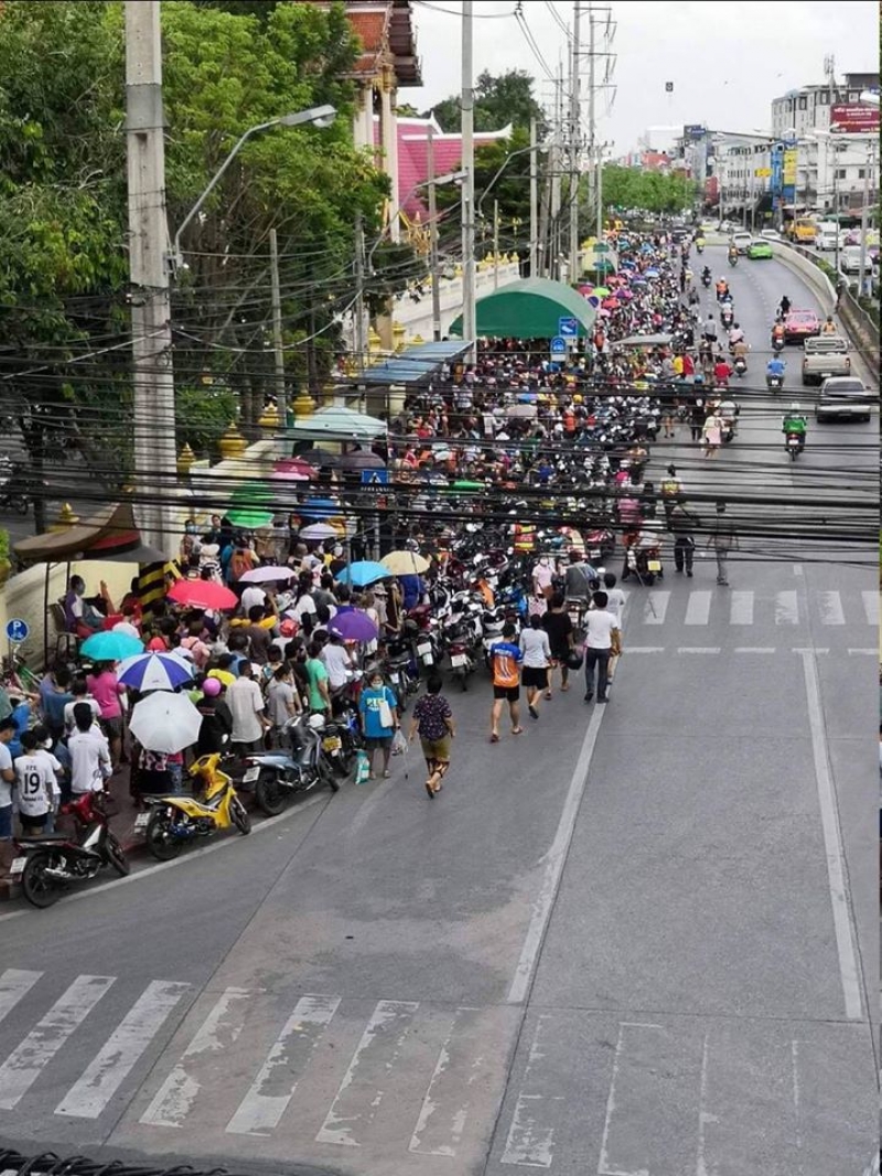 ภาพหน้าวัดดอนเมือง ชาวบ้านนับร้อยแห่รอรับเงิน